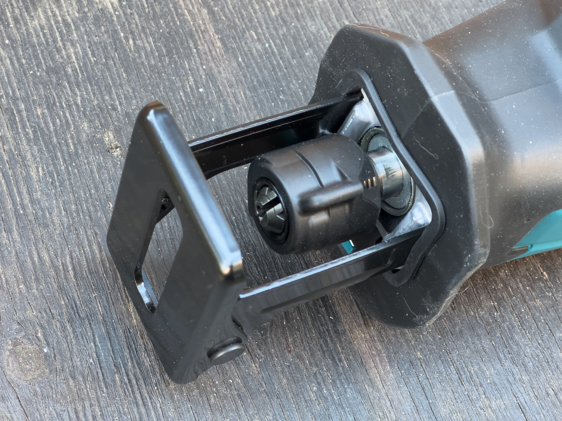 うっかりスイッチロックせずに収納して不意なスイッチONで事故らないようにアルミプレートでガードを取り付けてありますが刃全部隠しきれていない