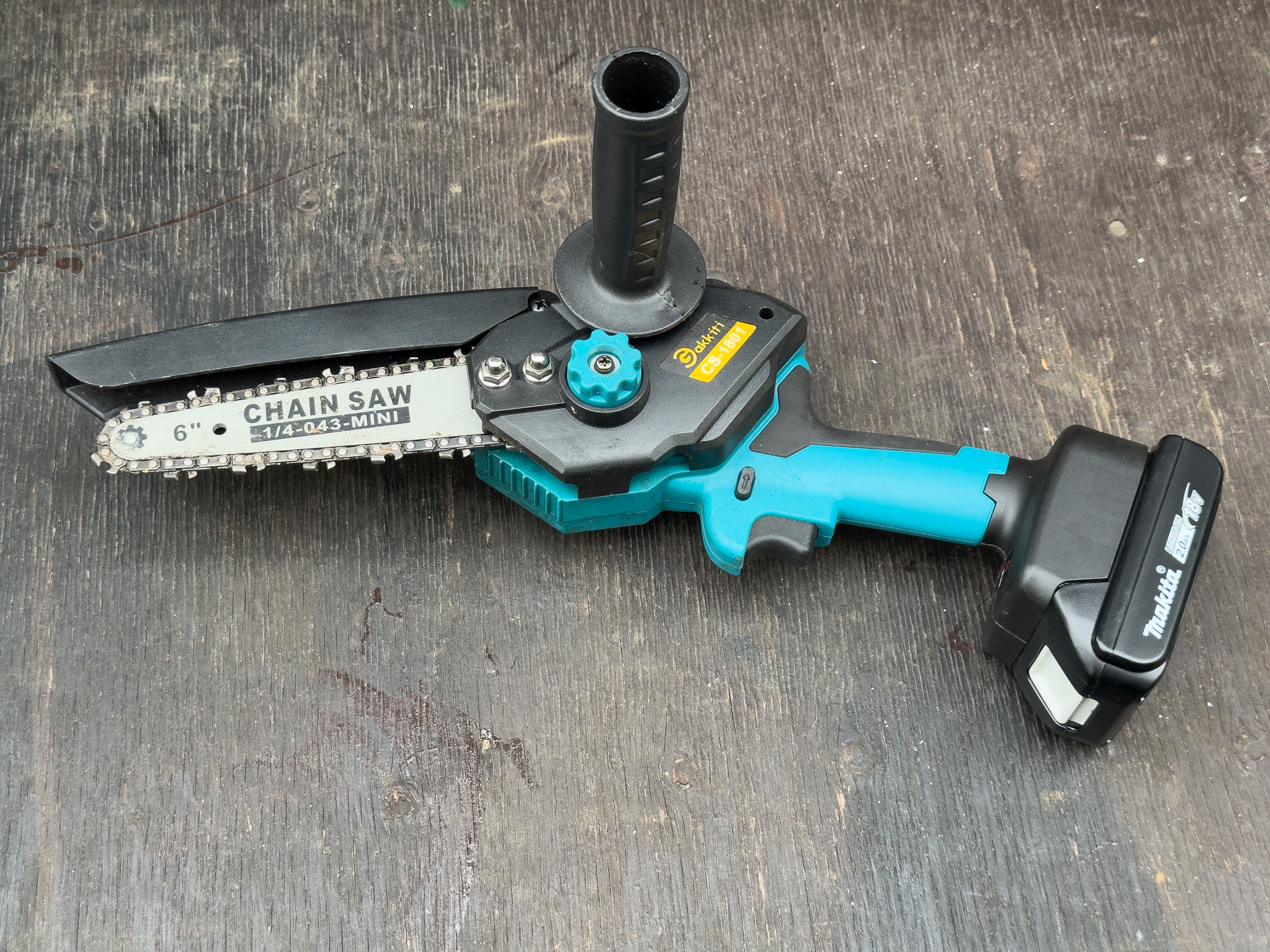 ハンディチェーンソーは普通のチェーンソーと異なってキックバック時にハンドルロックが左手の甲に触れて事故を防ぐセーフティが一切ないので実は結構危ない工具