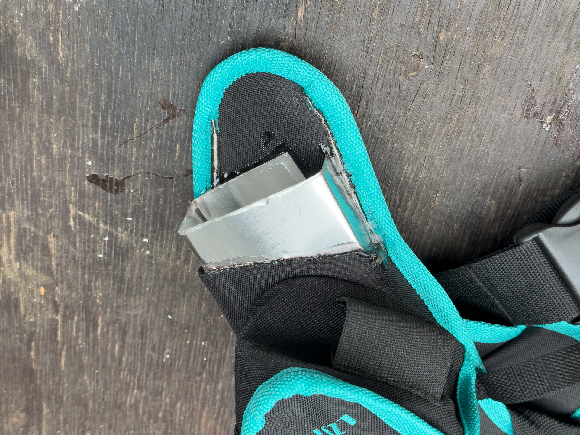 長過ぎてお辞儀するので折り曲げてカシメを使って固定しました
