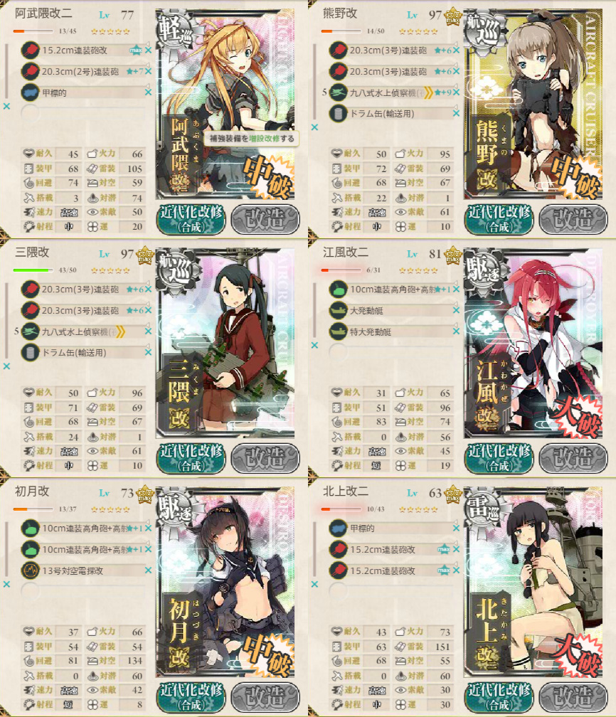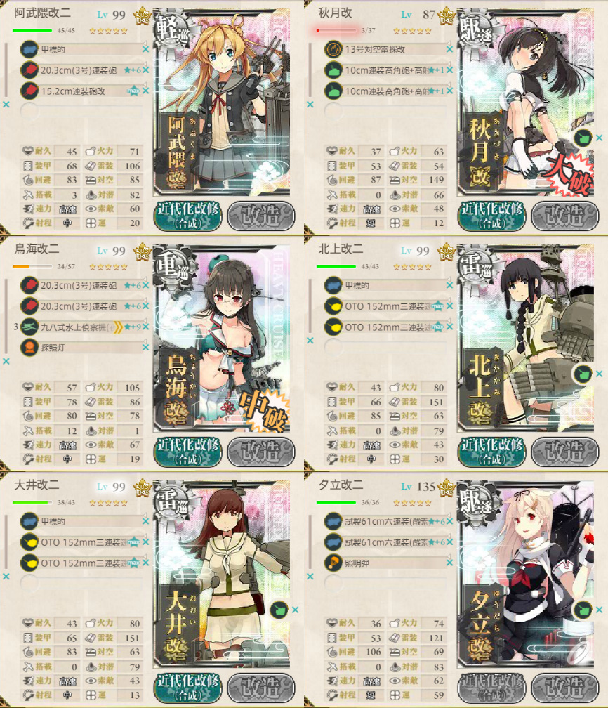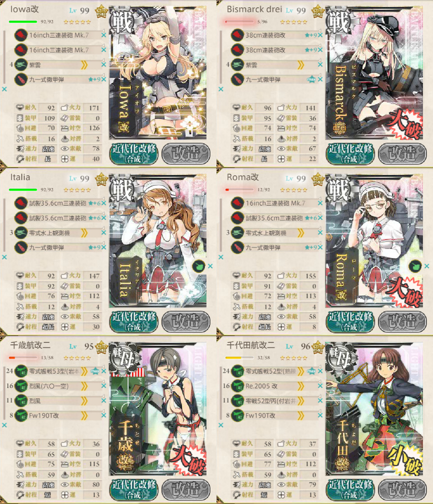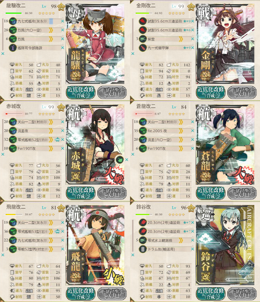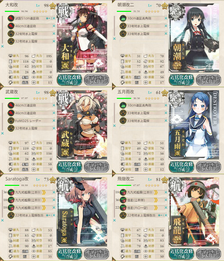攻撃メイン装備のままで高速統一の水上打撃部隊となると第一艦隊のメンバーは皆同じになるよねっていう