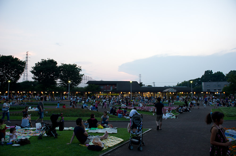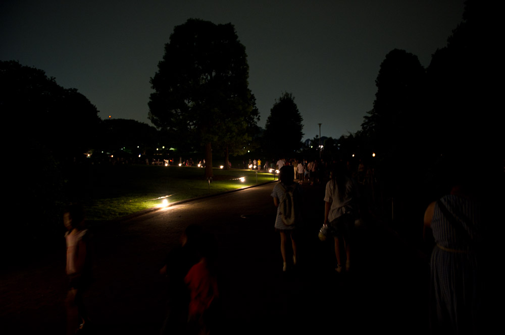 わざとピント外し開場の17時頃はそうでもないですが19時頃になると人もたくさん・・・そろそろホタルの鑑賞の列形成の時間ですよー
