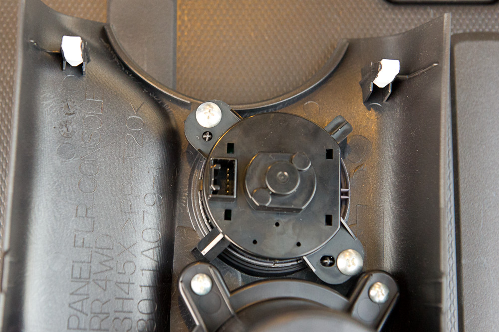 手で内張りのフロント側を軽く引き抜いてドライブモードセレクターに接続されているコネクターを外してから内張りを完全に取り外す