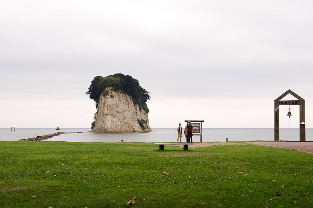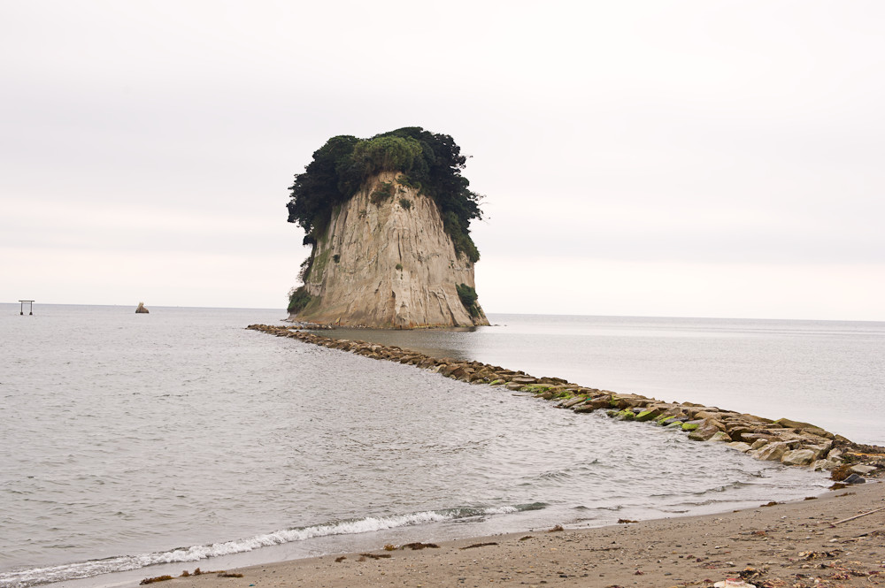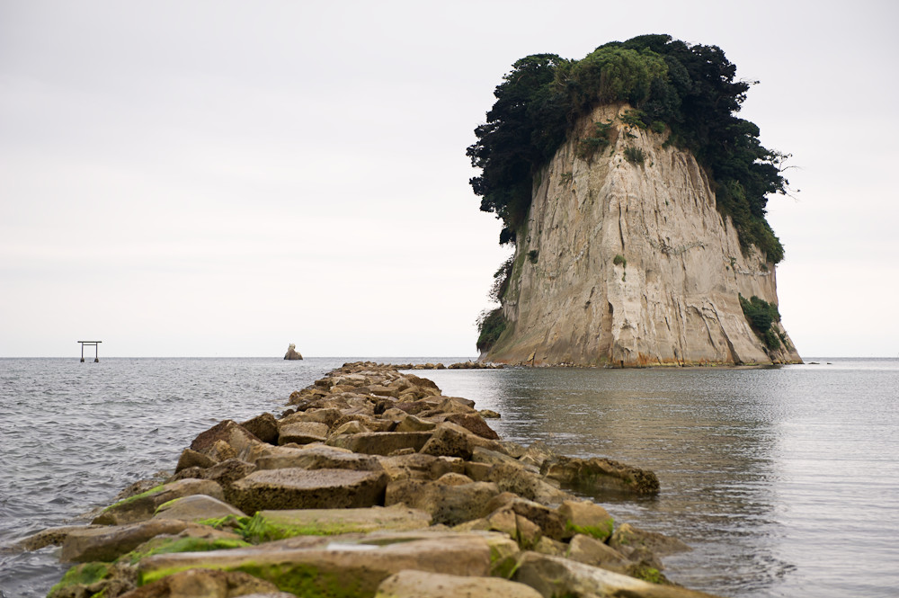 遠浅で石を伝って島へ行くことは・・・いや島直前で石がなくなっているし絶壁なので上陸は不可能