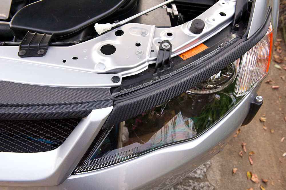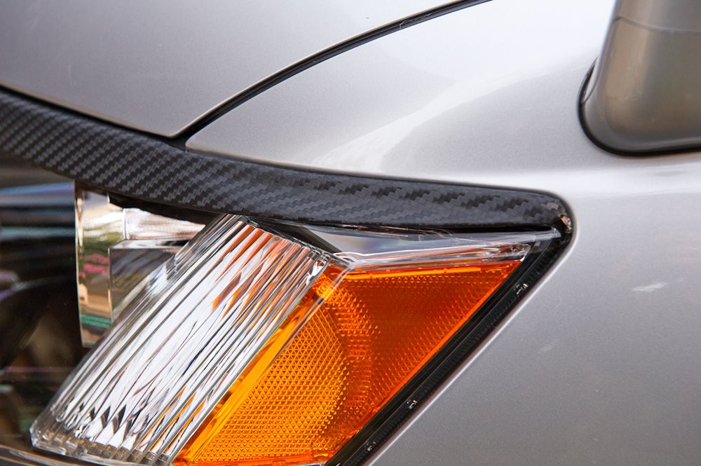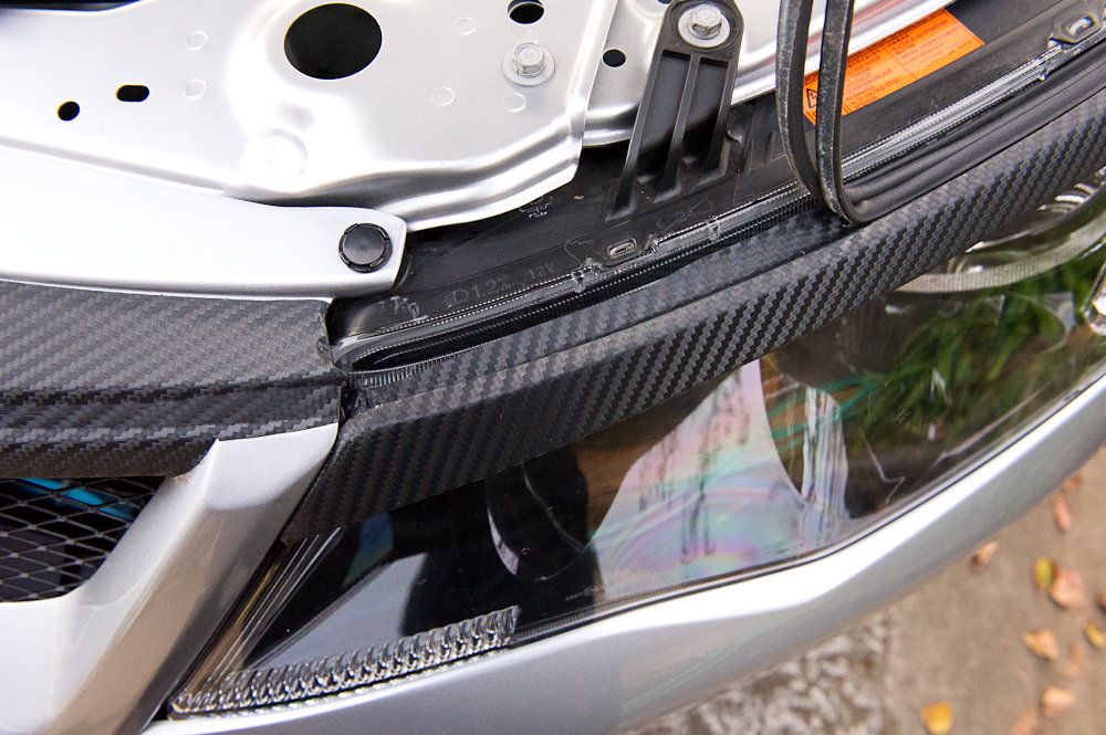 ダイノックカーボンシートをヘッドライト上部の内側部分にまで延長してあります