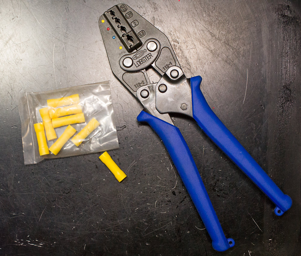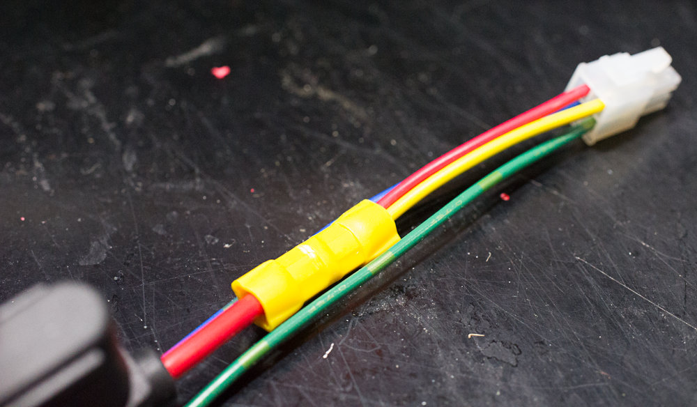 ヒューズホルダーと赤・黄色線を絶縁被覆付圧着スリープで圧着させました