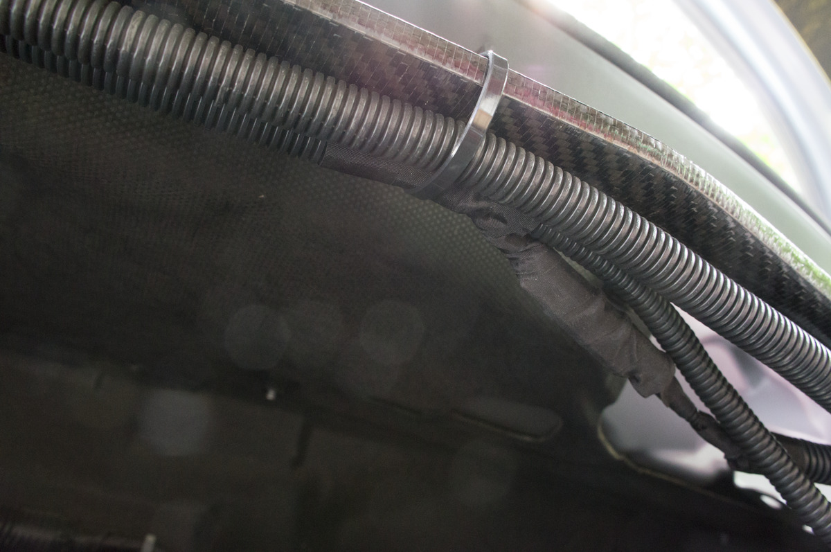 (リアウォッシャーの穴にはもう何も入らないな・・・4AWGのバッ直線が邪魔すぎる。結局外部アンプ1つしか使わなかったから8AWGにしておけば良かった)