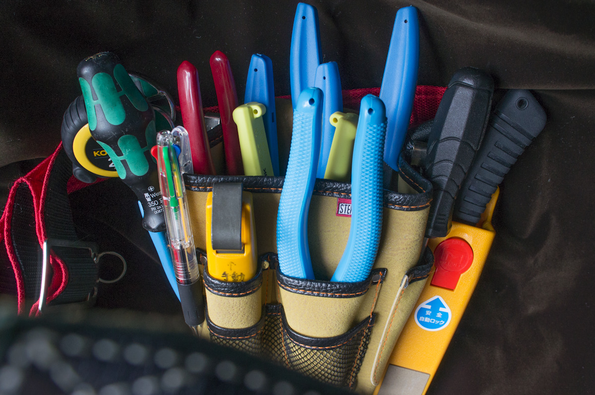 工具以外では、カバン・筆記具・受験票・写真票・布巾・扇子・絆創膏(数枚)・ゴミ袋・粘着テープ