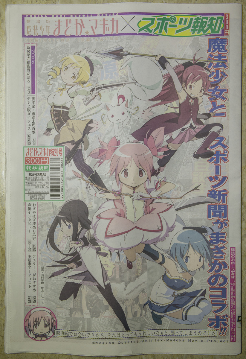 報知新聞社から魔法少女まどか マギカのみを特集したコラボ新聞が18日より売られているということで、ちょっとコンビニへ買いに行きました