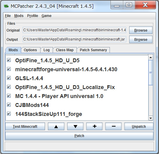 OptiFineは最新の1.4.5_HD_U_D5でもいけました