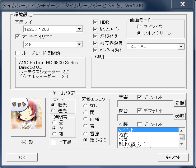 設定はこの通りで統一、ビデオカードの設定はデフォルト