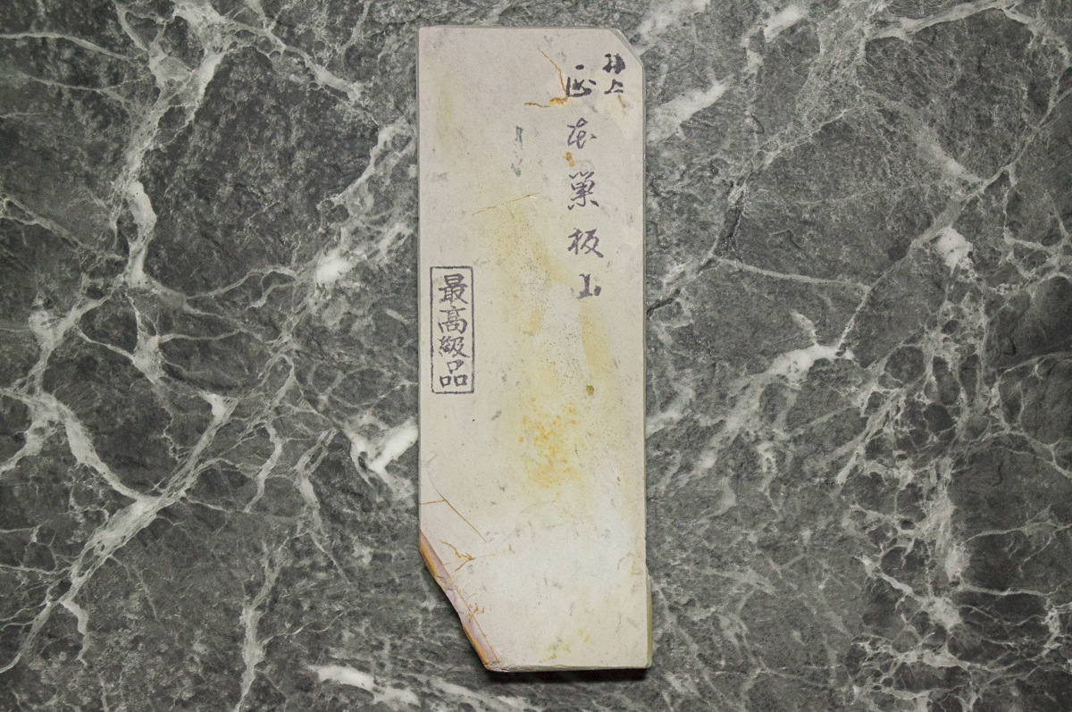 見た目は落ちるし巣もあるがその大平山の蓮華砥石よりもずっと質の良い砥石で、実用重視ならこっちが遥かにおすすめ。実用を考えるならこういう上質な砥石は一つはあったほうがいいよとお墨付き