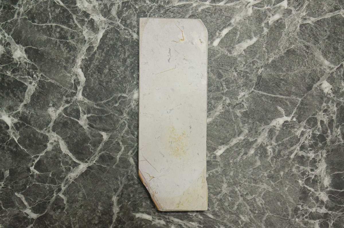 (研ぎ面9割平面出し後。下地がだいぶ白くなった)