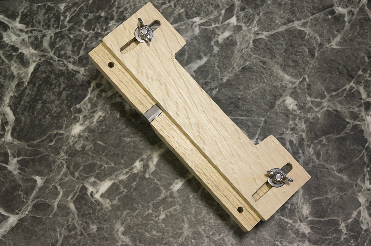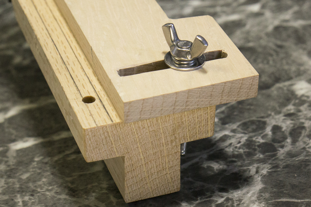 鉋台に穴を空け、定規に楕円の穴を空け取り付けられるようにしました