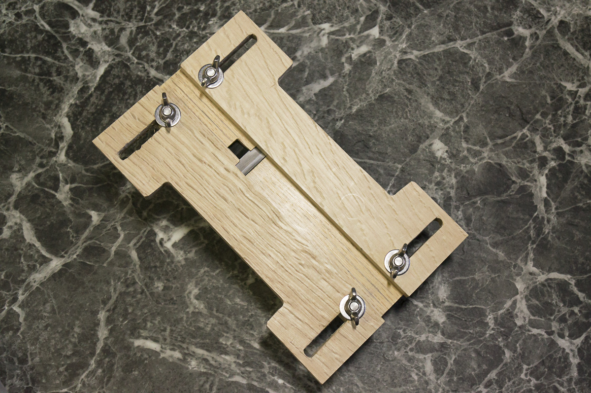 腕があれば六角ナットを台に埋め込みたかったがミスると台が終わるので蝶ナットにした