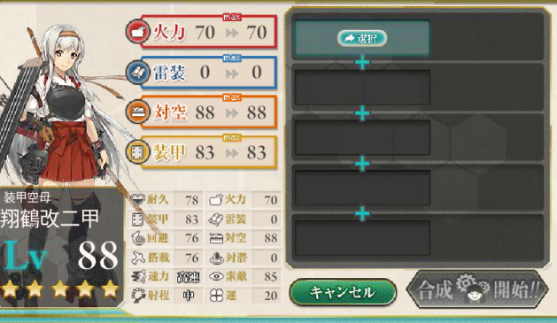 瑞鶴もついでにレベリングに随行したこともあって86→89になったので大丈夫でしょう