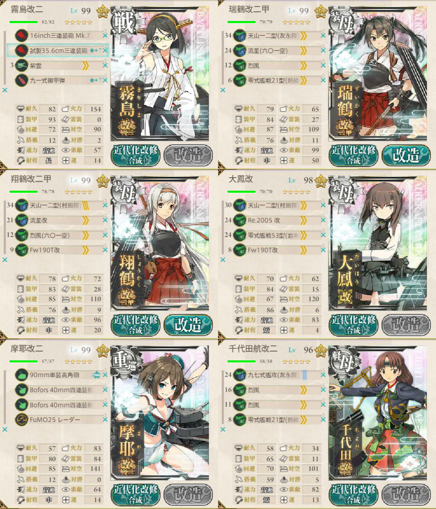 Oマスの敵連合艦隊が結構大破要因になるのでこちらへ集中して飛ばしました