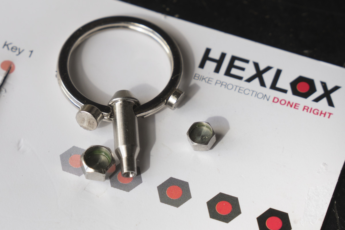 HEXLOXという六角穴のネジに蓋をするみたいな防犯用のアクセサリーがあります