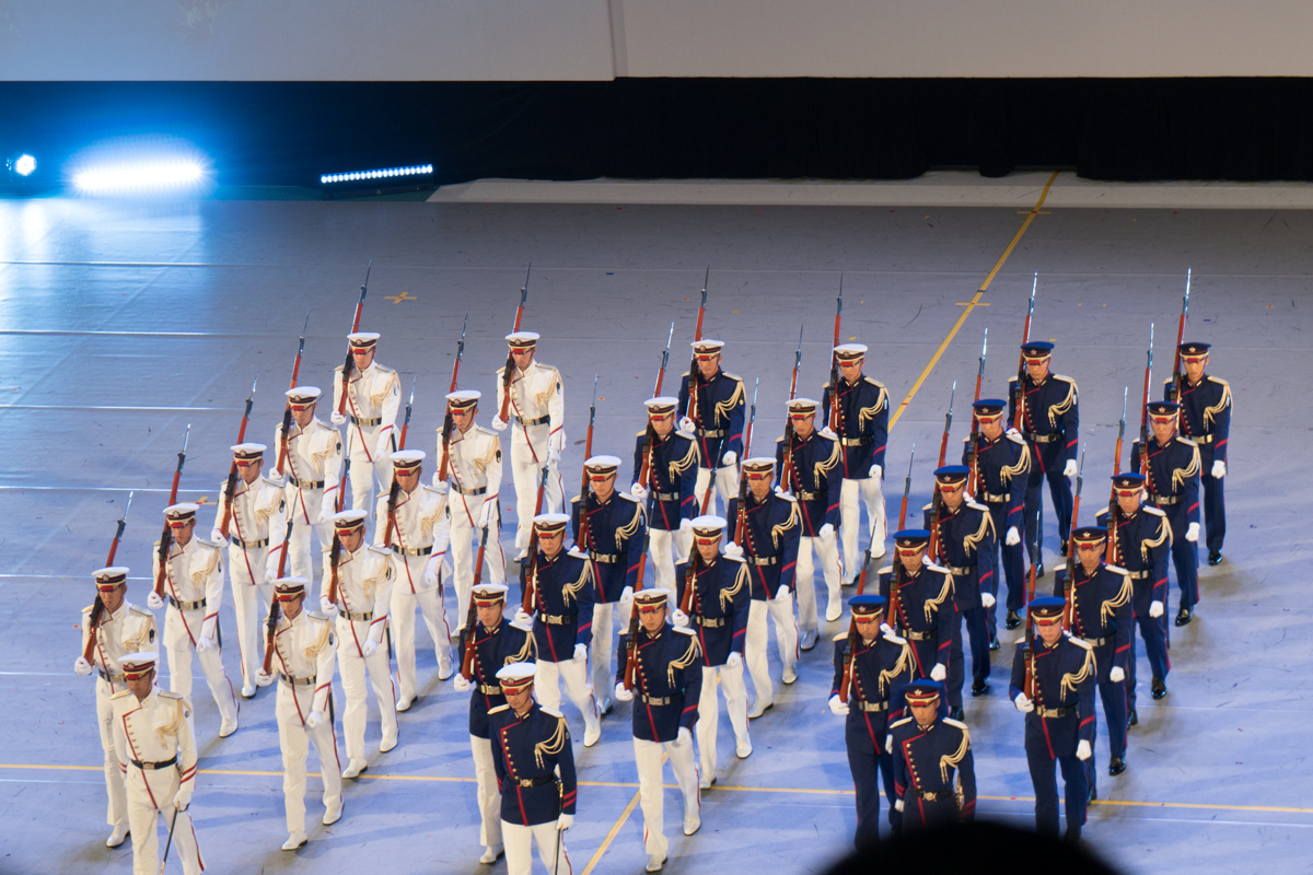 演奏しながら移動するのはデフォだし、太鼓は担いであちこち移動してるわ、空砲撃ったりやっぱり自衛隊なんだなと動きがあるので人気な理由が分かりました