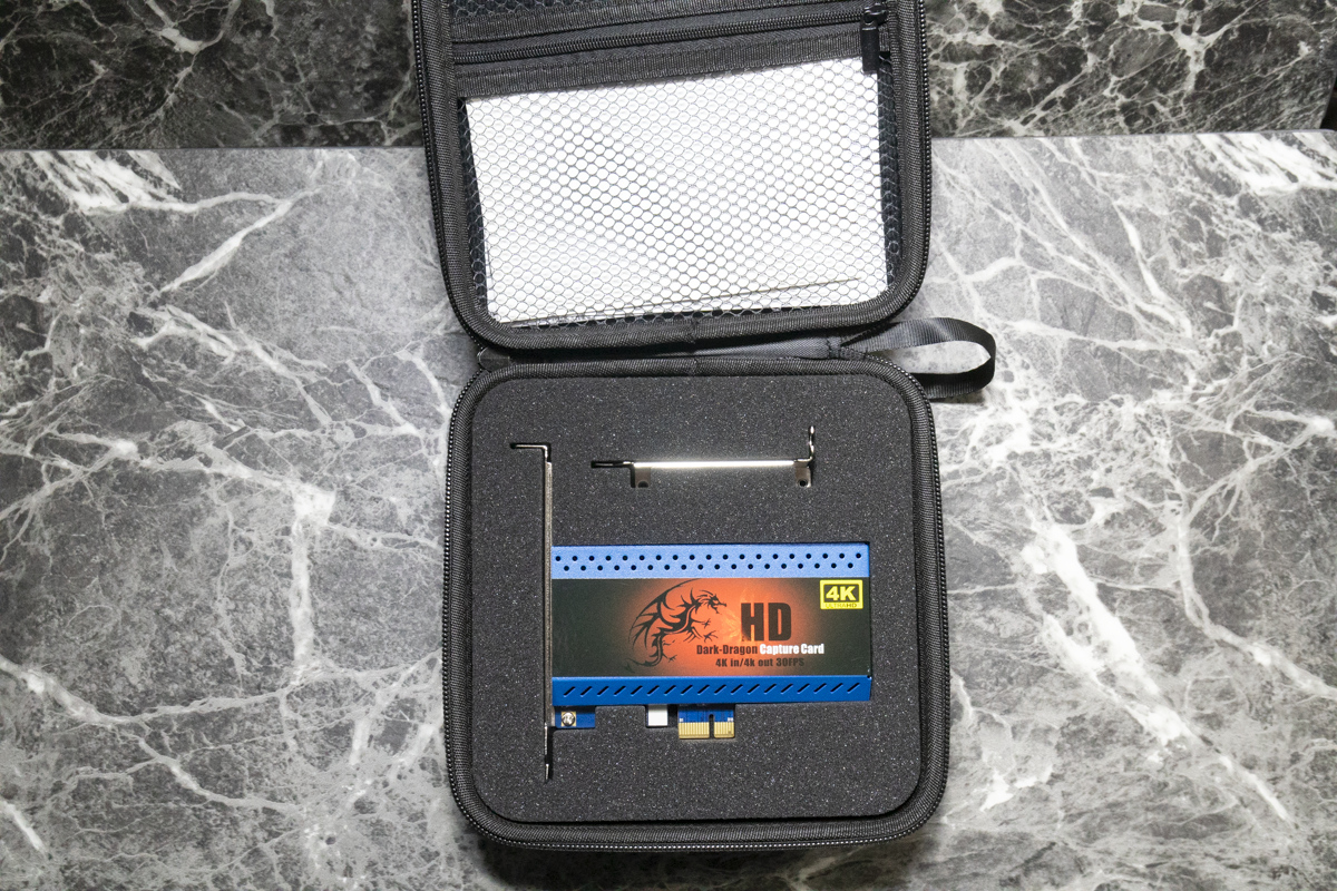 4K対応のキャプチャーボード。紙箱ではなく布ケースという