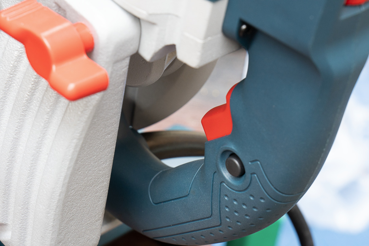ポータブル状態での切断対象の抑え的役割の他に、ベース作業時での振り下ろしストッパー的役割も兼ねています