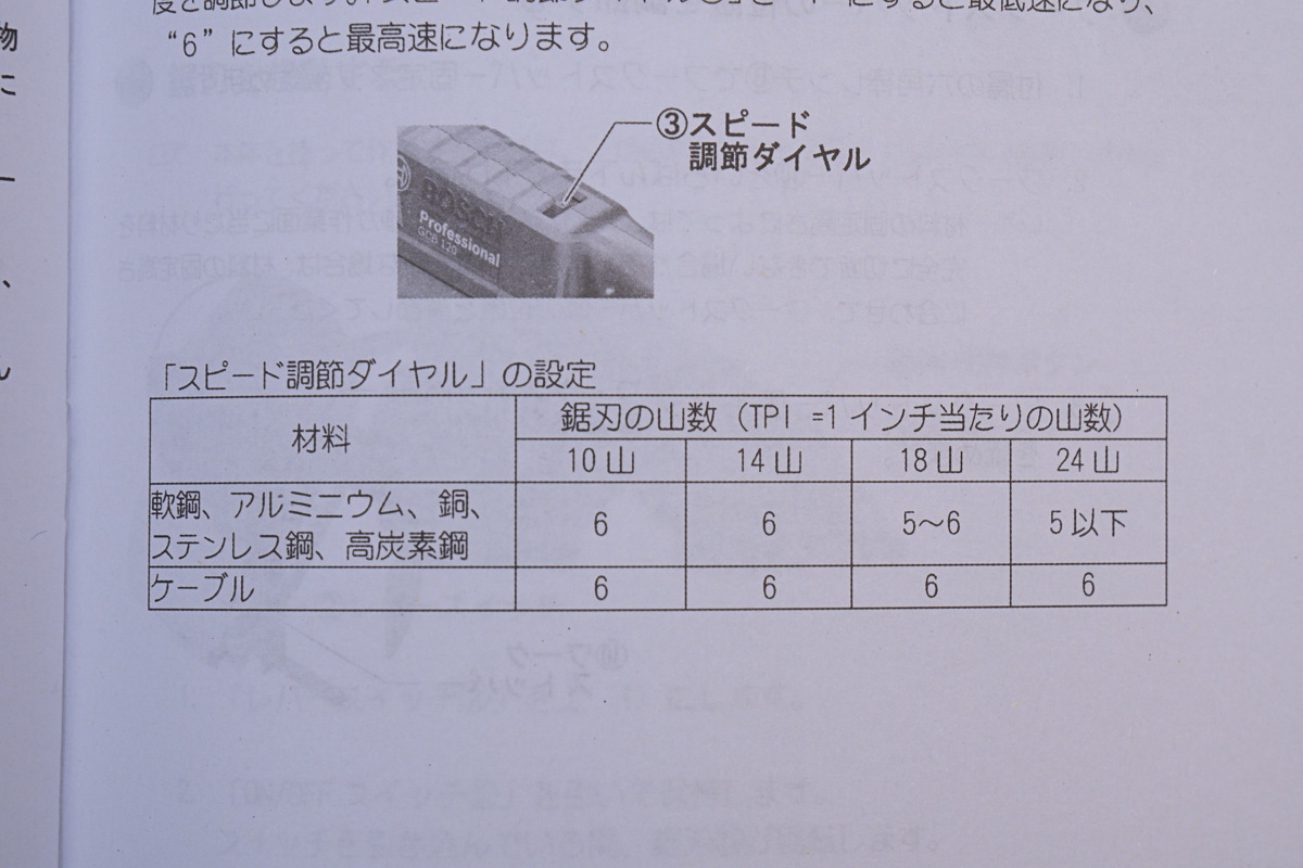 (ブレードの下ろし立ては最低速で慣らし、難削材は速度を落とした方が良いかと)