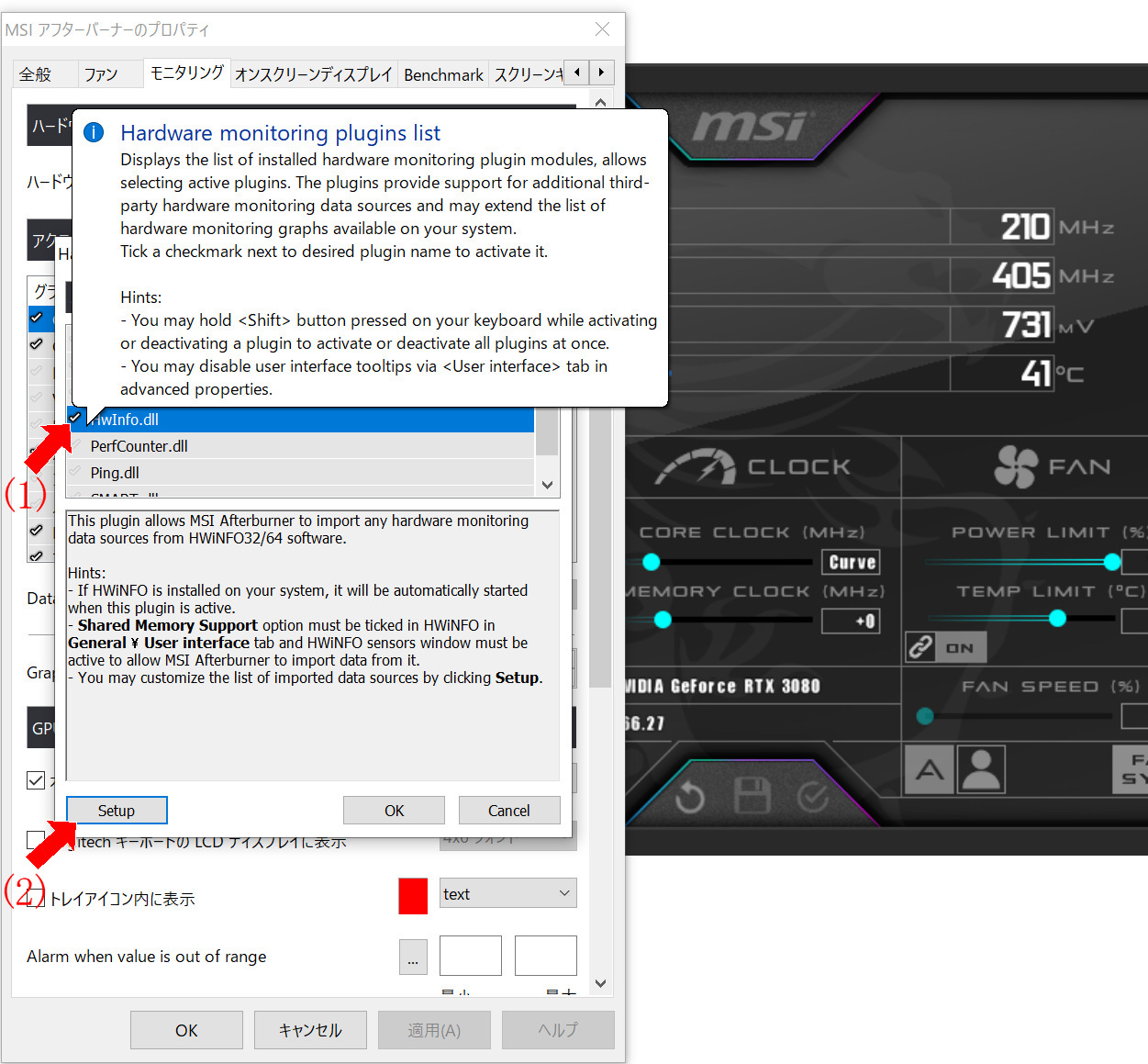 HwInfo.dllにチェックを入れて「Setup」をクリック