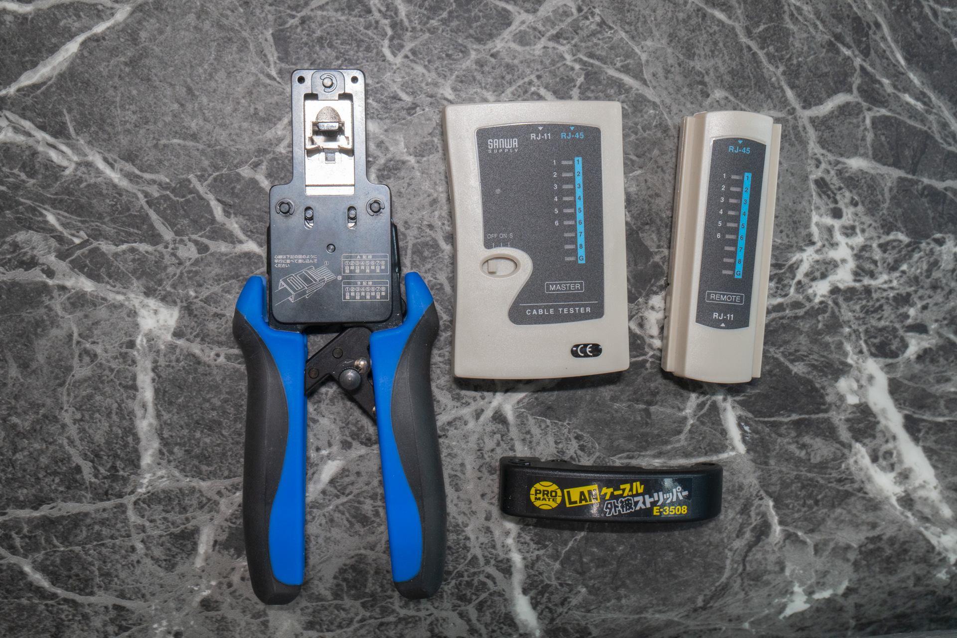 今回から100m巻きのケーブルを買ってコネクタを取り付けて自作LANケーブルにすることにしました