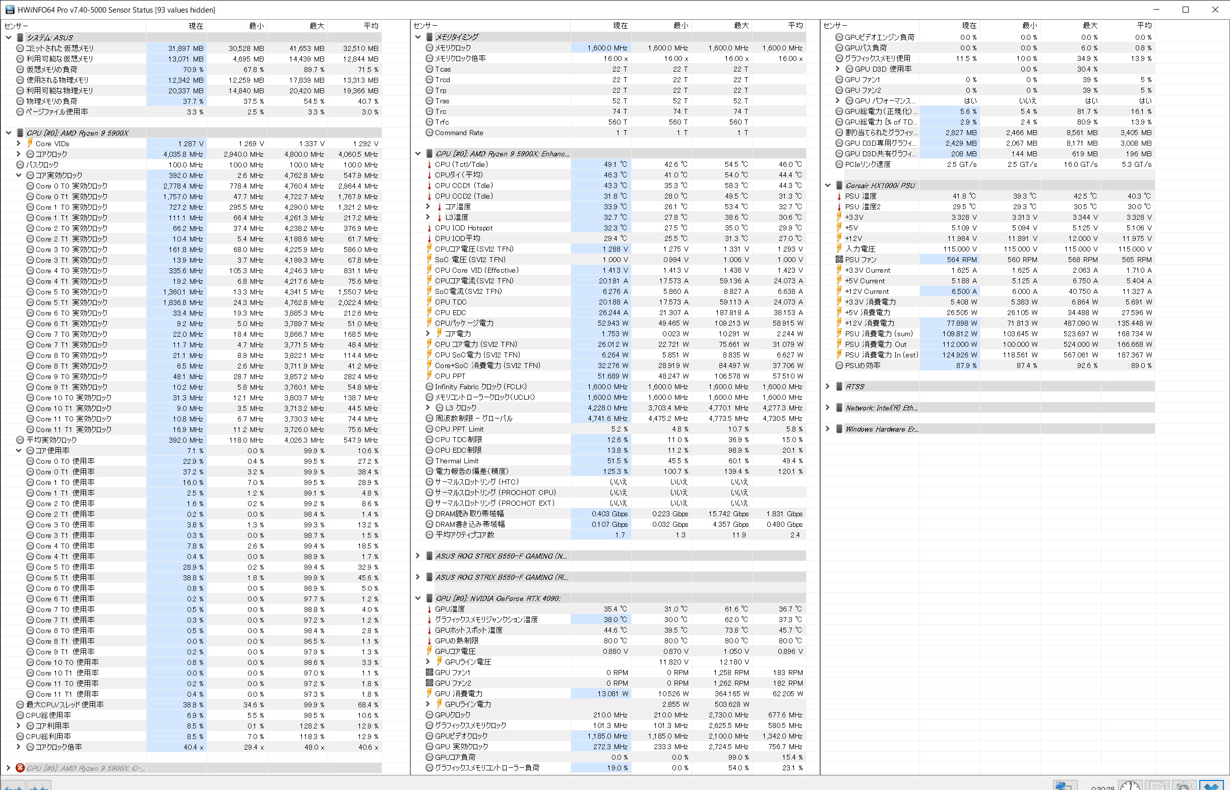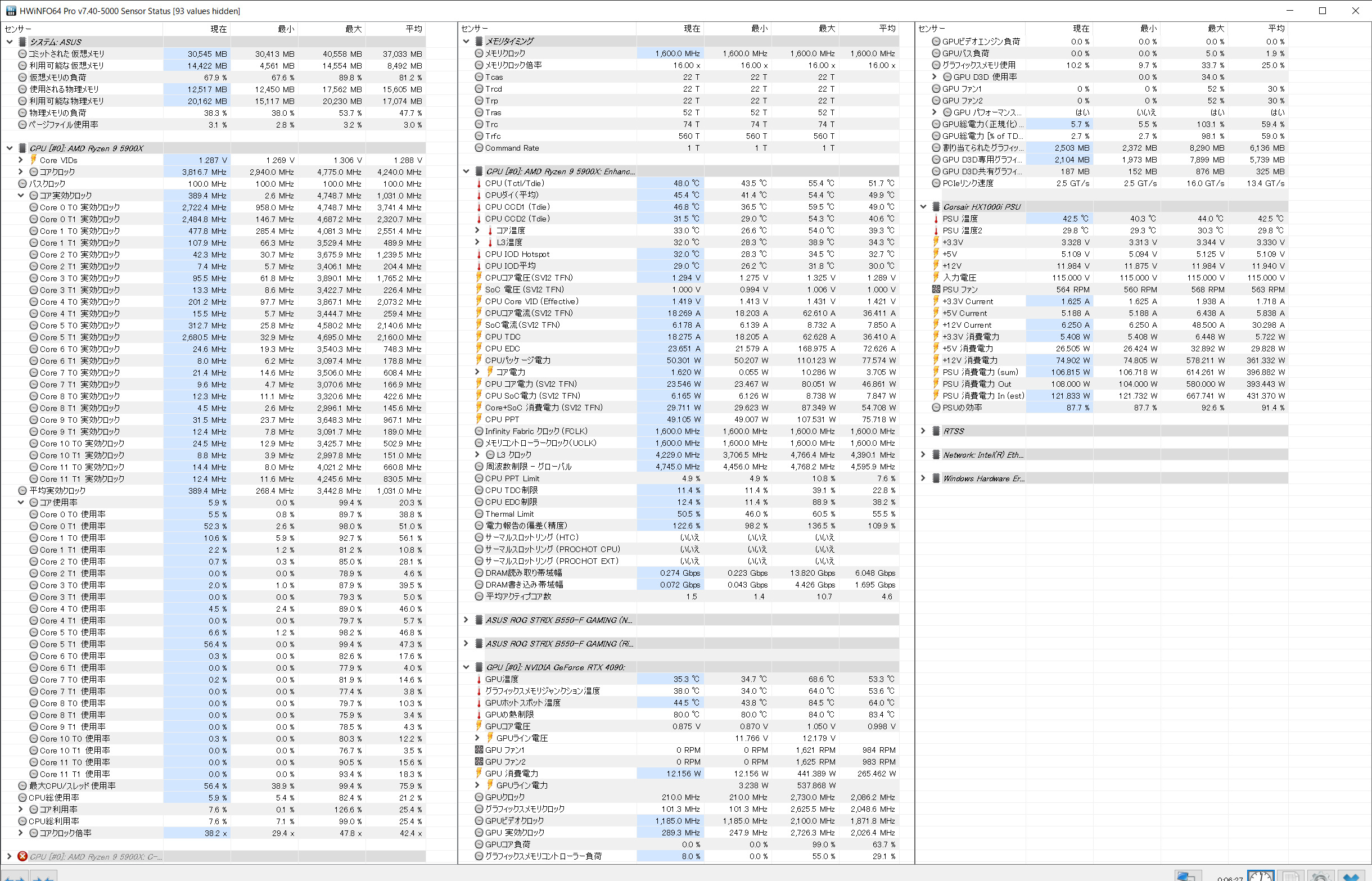 CPU:Ryzen 9 5900X(オフセット電圧)