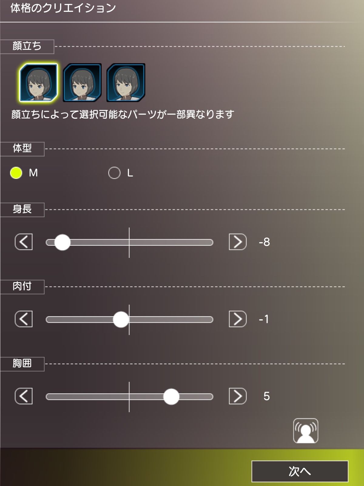 普段使っている体型のセッティングがこれ。Mサイズで小柄です。なお胸囲