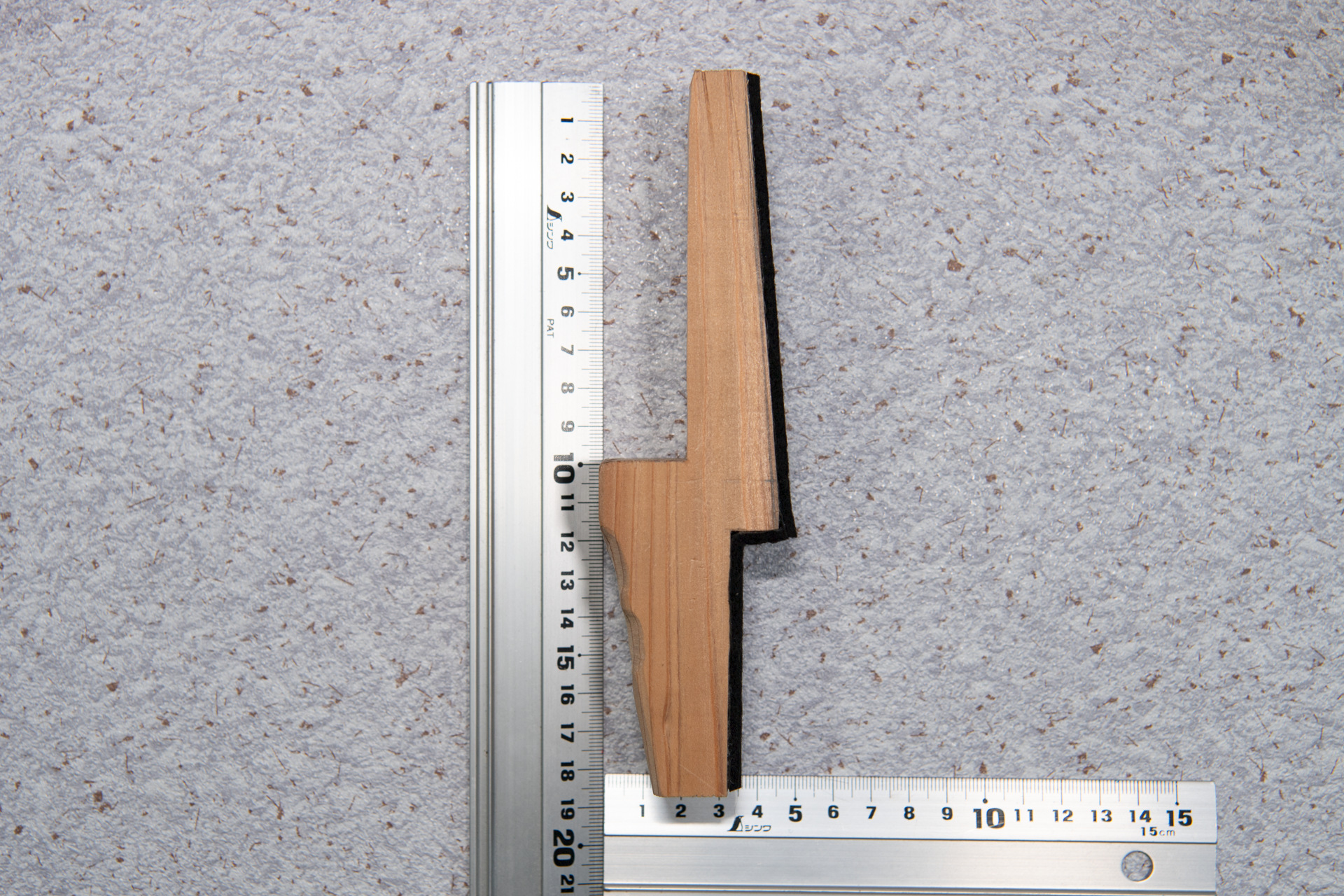 当て木(刀当て)は45mm角の杉の垂木をノコギリでカットしてついでに持ちやすいように少し指のかたちに削りました