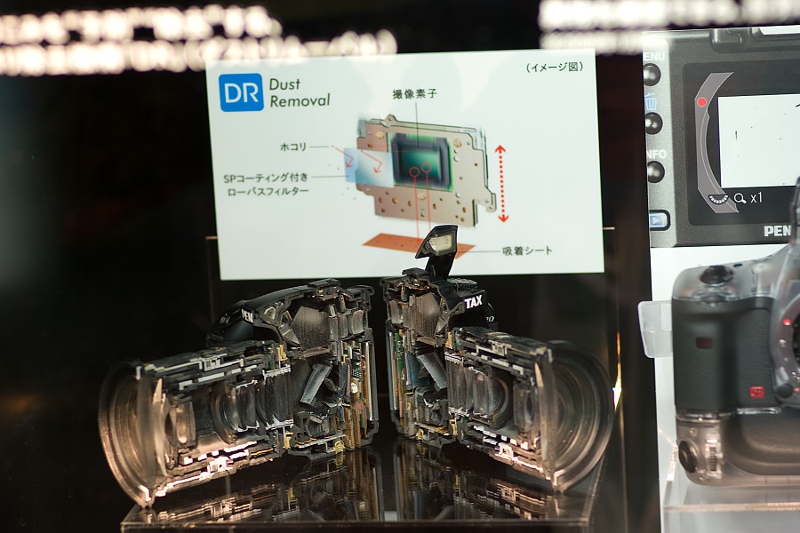 CMOS(実際にはその前にあるローパスフィルター)に付いたダスト(ゴミ)の場所をチェックするための機能の実演をやってました