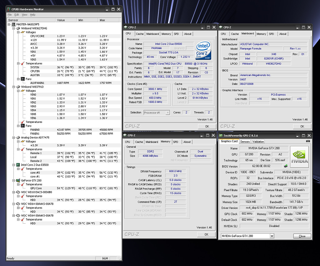 当然比較対象は9800GX2(GTX280が届く前日に計測)