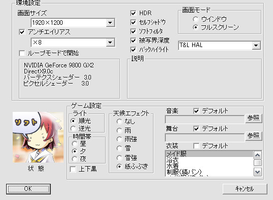 タイムリープ WUXGA(1920*1200)AA:x8設定項目はたくさんあるのでSSで