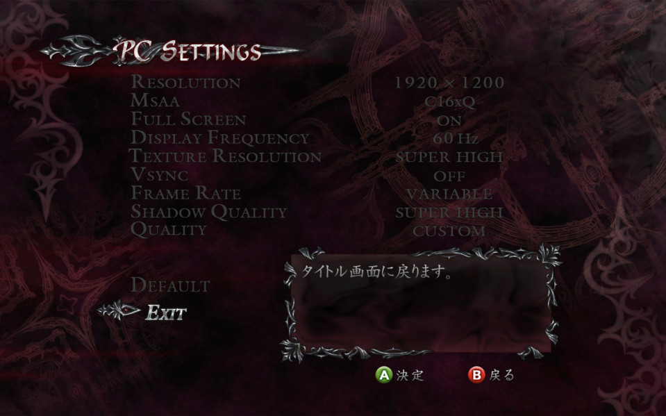 デビルメイクライ WUXGA(1920*1200)AA:C16xQ HDR:HIGHこちらも設定項目はたくさんあるのでSSで