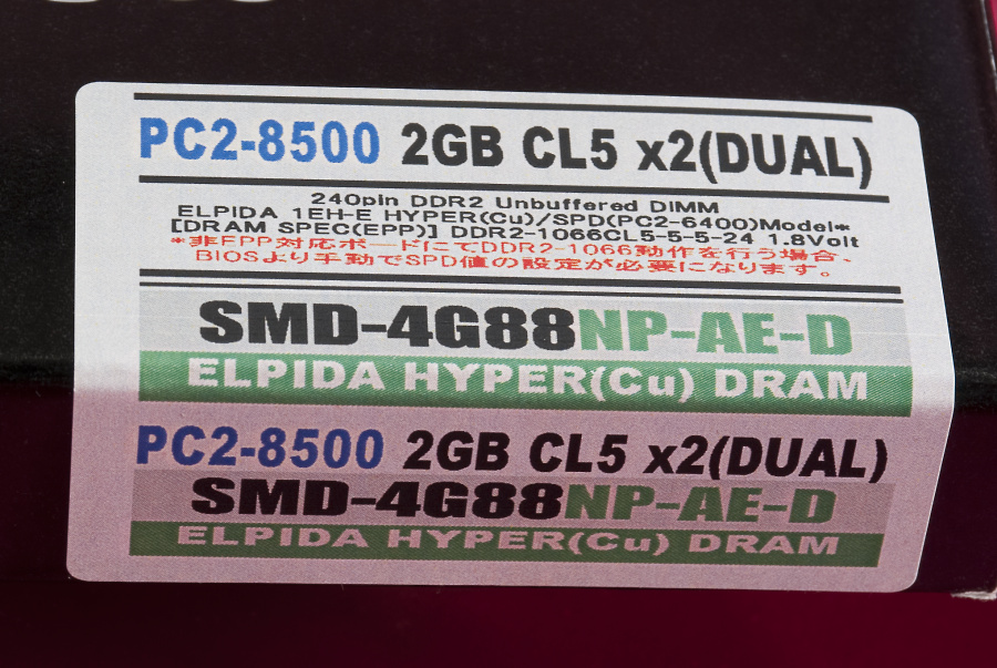 チップはELPIDA社製のHYPER仕様、Cu(銅)配線のDRAM
