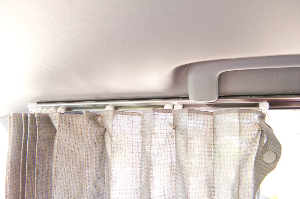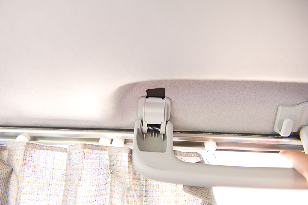 もちろんグリップも問題なく使用できますしカーテンもなめらかに動きますカーテンレールを付けるとランナーが動いて多少うるさくなりますが、カーテンの片面を面ファスナーでBピラーへしっかり貼り付けたら気にならないほどに軽減された