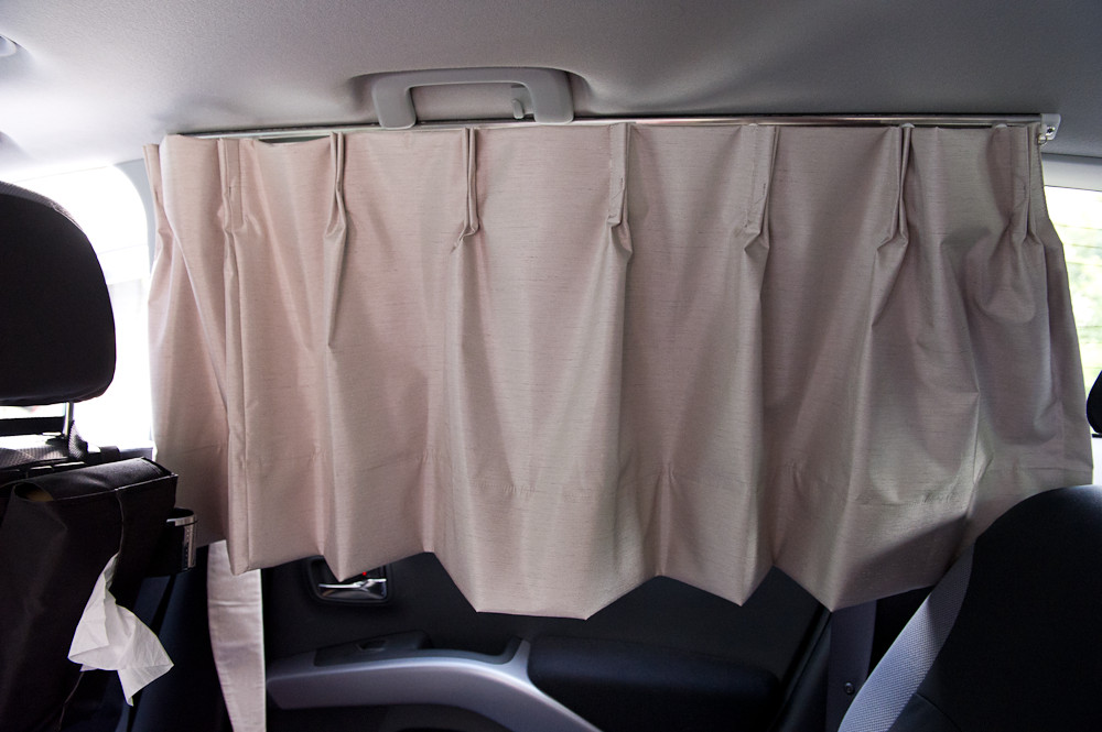 納車時にディーラーの人に前車(同じ三菱車)のようにカーテンを付けて貰えないかと相談したことがあるのですが、ドア付近の内張りの素材が前車はプラスチックでアウトランダーは柔らかい素材なので強度が確保できず固定が難しい