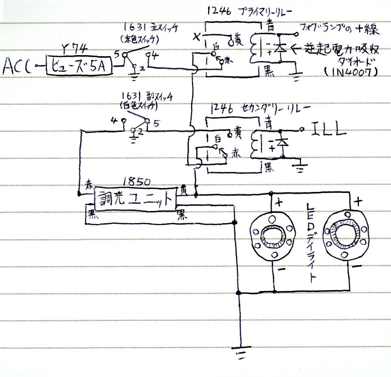 前回のデイライトをリレー2個で制御する回路