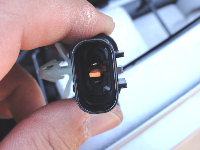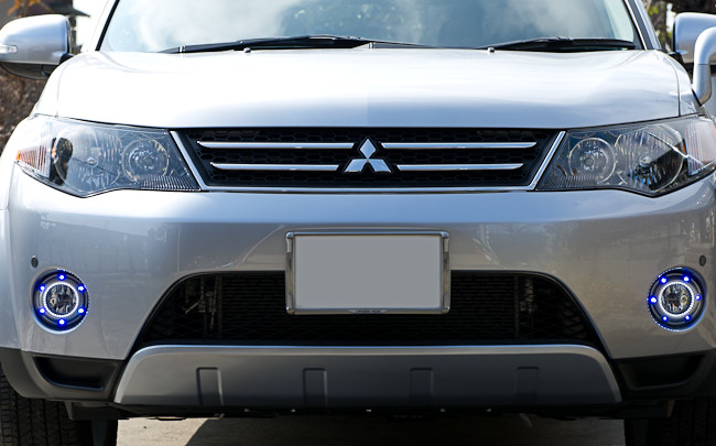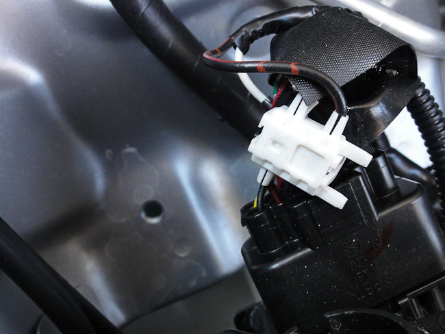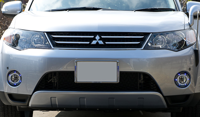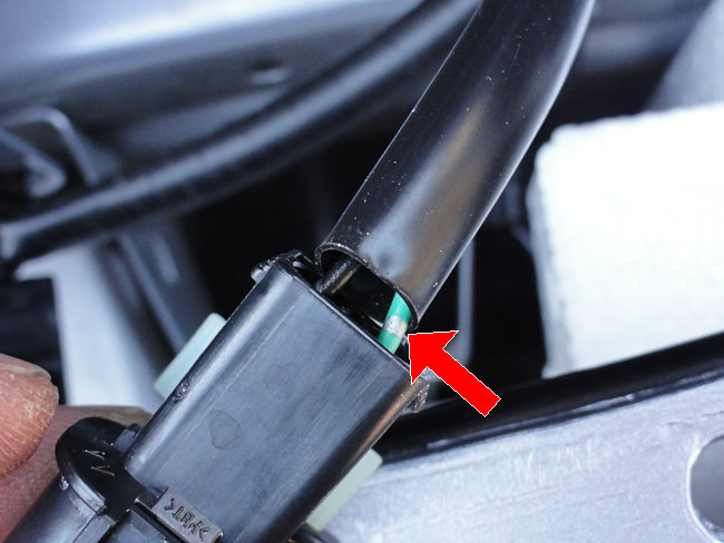 下の写真は実際の左右のフォグランプベゼルに配線したときの写真だが