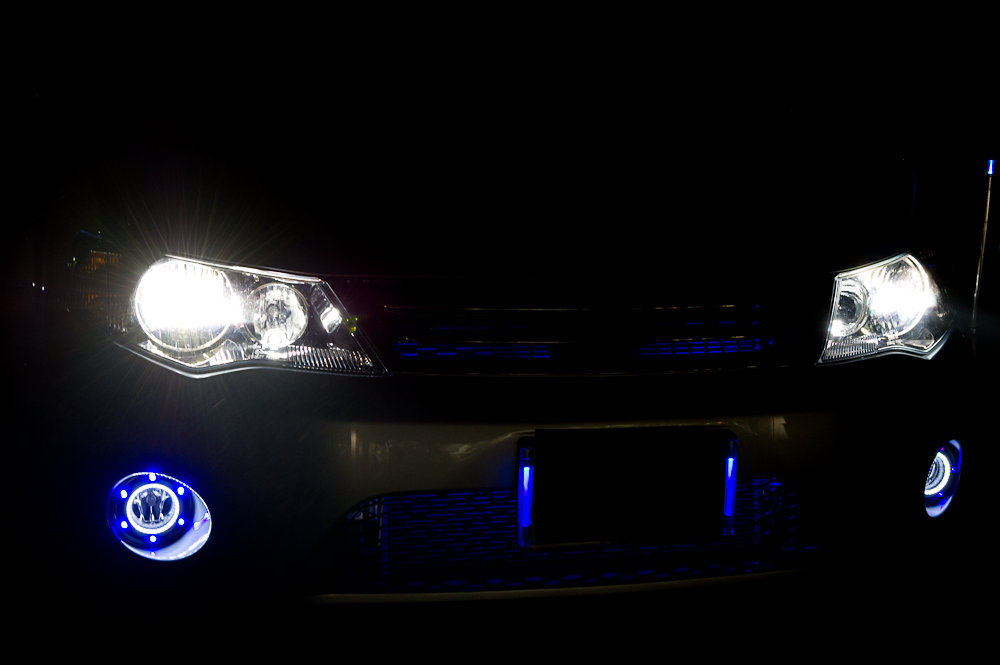 バルカン+リング仕様のデイライトはまだ完成していないが、試作品として作ったただのバルカン仕様フォグベゼルは取り付けてあるのでそれをリレー動作のテスト代わりにします