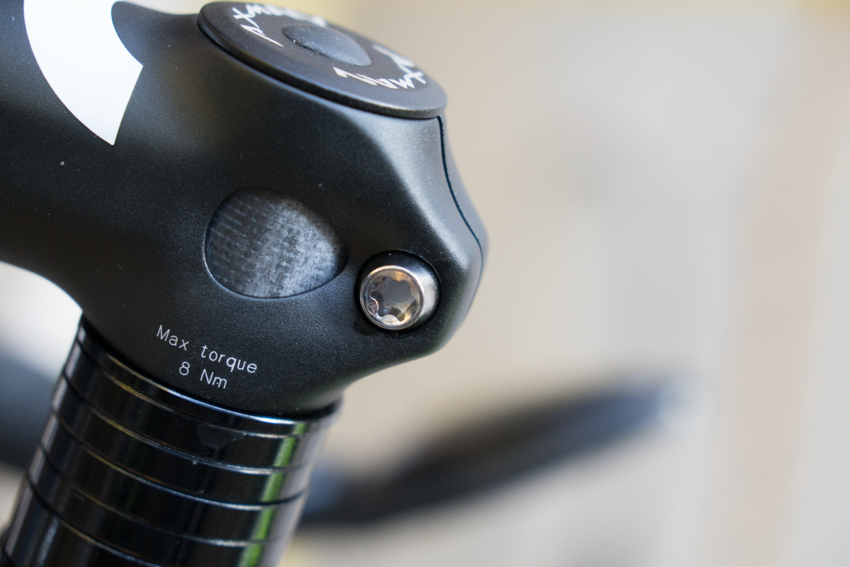MAXが8Nmですが怖いので5Nmちょっとで締めています。ホイール足で動かないようにしてハンドルを左右に振ってもステムがズレることがない程度に固定されていることはチェック済みです