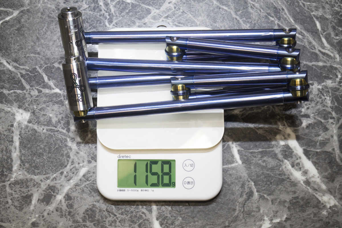 その名の通り560gが公式の重さなんですが、恐らくシャフトやシリンダー部分の保護カバーやシールの分重くなっているようですね