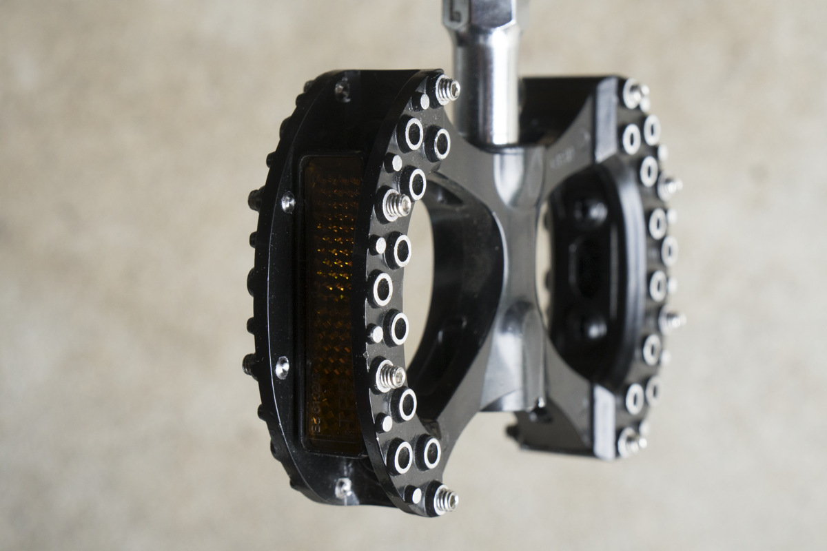 左右のペダルで合計32個の穴あけとタップ切り、イモネジ購入と緩み止めを行いました