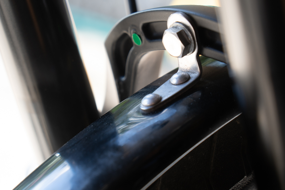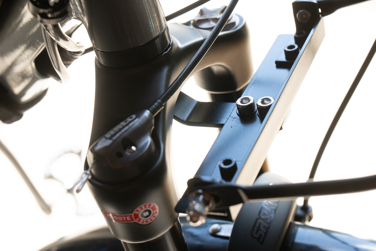 下部の固定だが、クラウン(二股の根本)に穴が空いてないのでキツい
