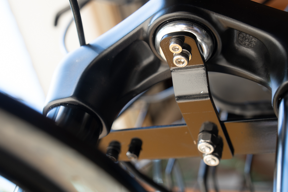 真似する人はまあいないだろね(ブレイスのフロントフォークを替えて純正の前カゴとフェンダーを移植する奇特な人なんてねぇ?)