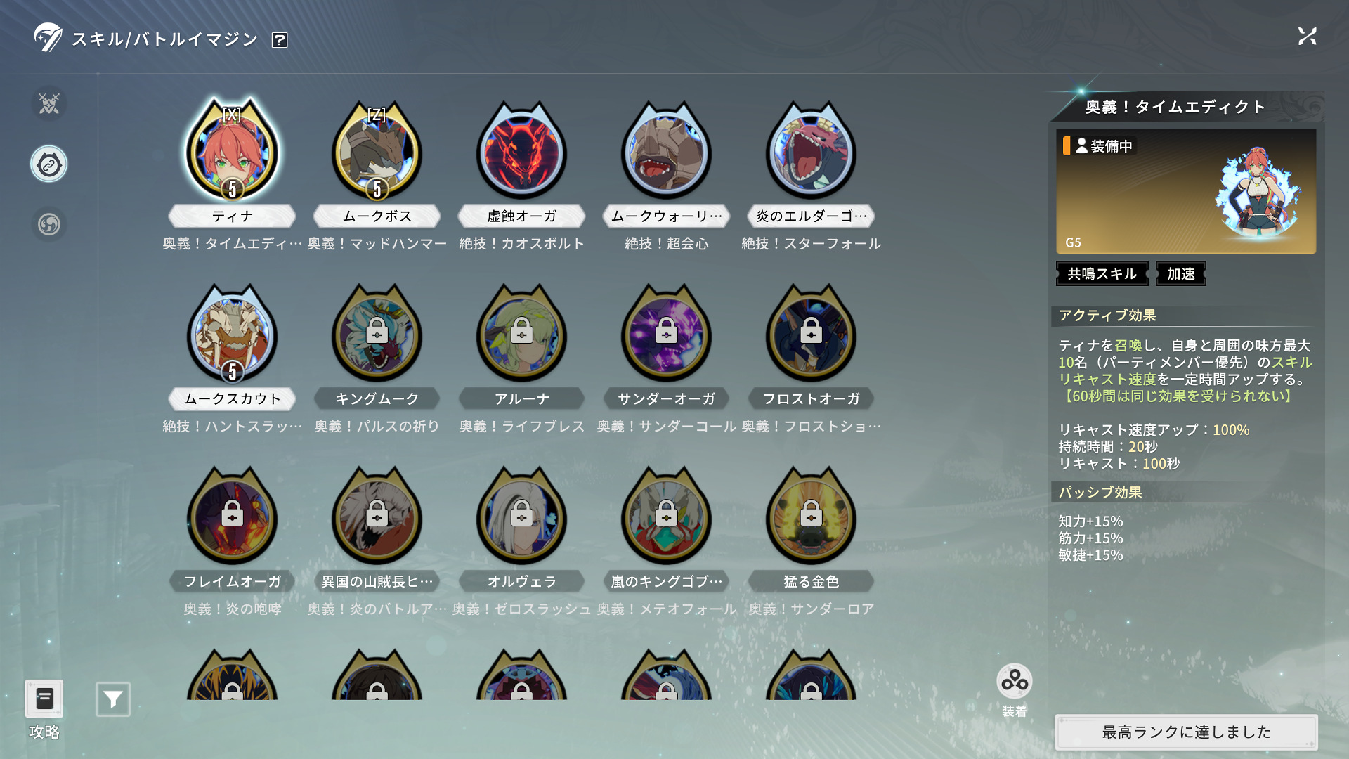 使用しているイマジンはムークボス5凸、ティナ5凸