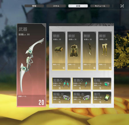 武器が20のmax、他は15 これで許してください