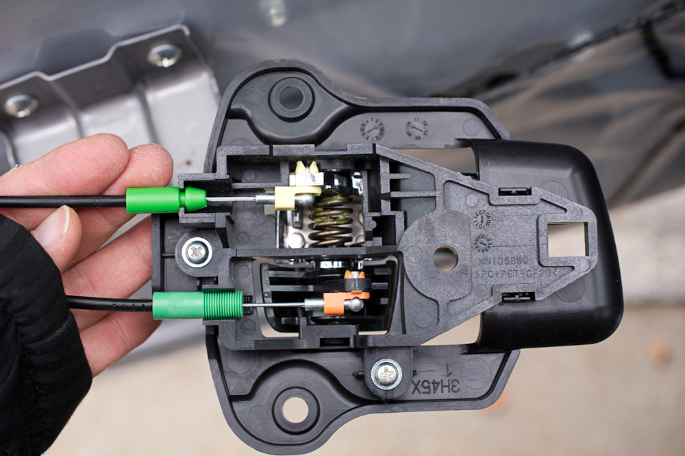 アウトランダーのドアの内張は3つのビスを外して下から引っ張り、ドアノブユニットのビス2つ外しユニットを内張から外し、スイッチのカプラーを外せば良い