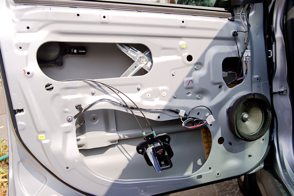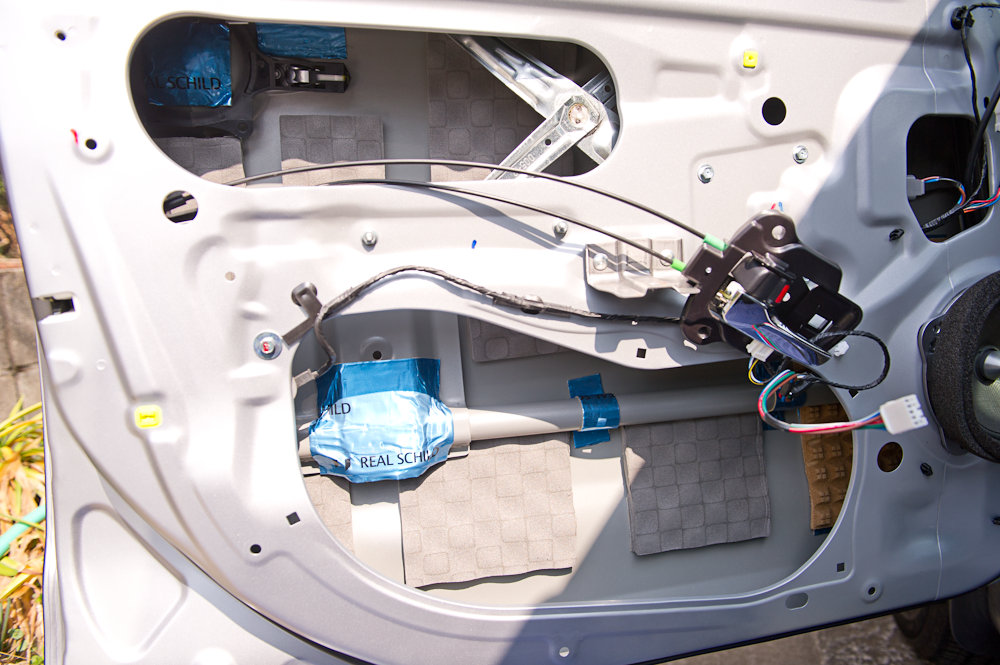 ドアワイヤー側のサービスホールはどっちも用意されていないから開きっぱなしで、アウターパネルは手つかず、インナーパネルの制振も殆どされないので