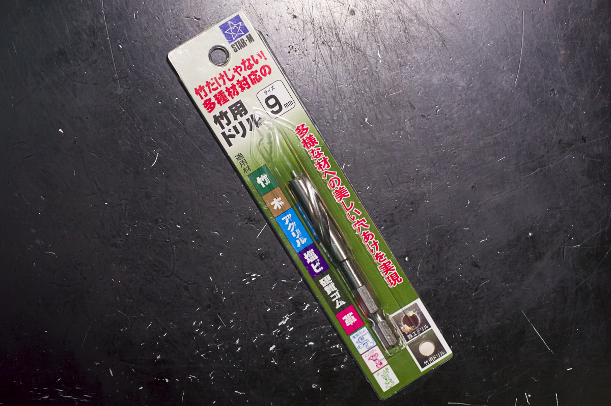 この竹用ドリルを買う前に手元にある木工用のドリルでやってみたんだけど、どんなにゆっくりやろうが端っこはおろか中央でも見事に割れる割れる